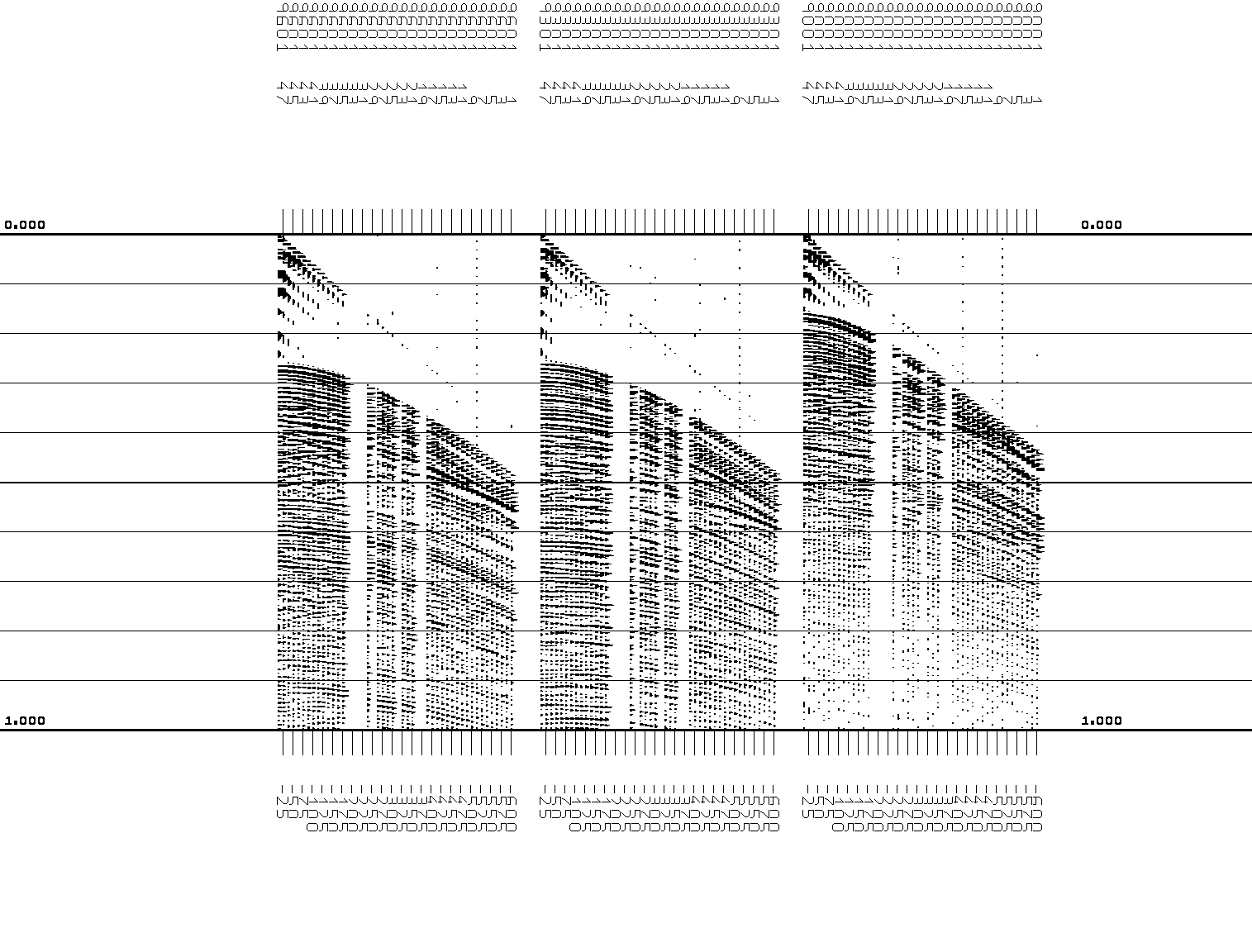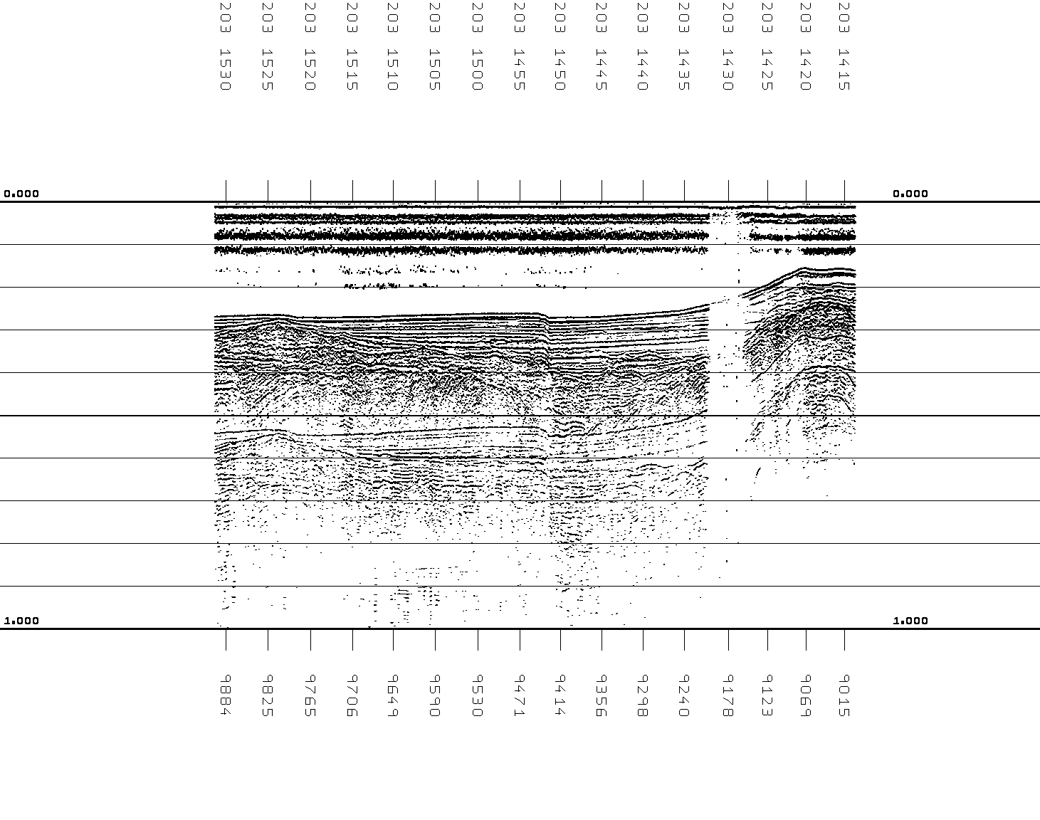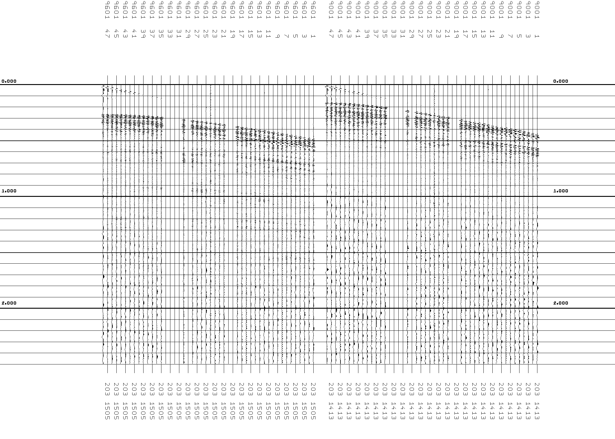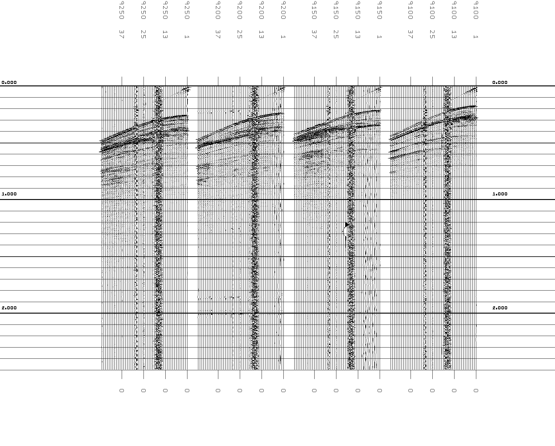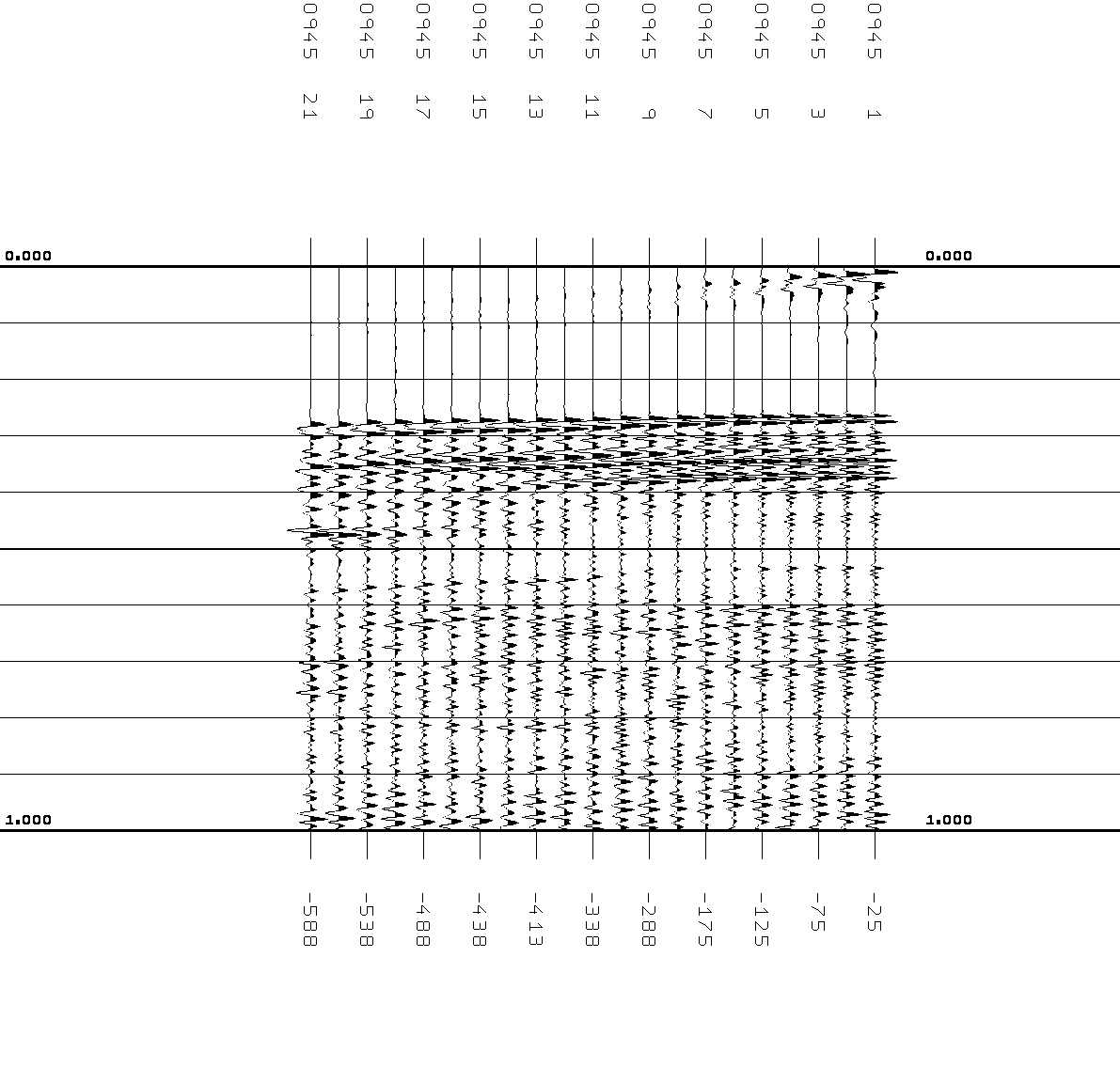 520>ls *segy* day203-1413z.segy day203-1440z.segy day203-1505z.segy day203-1413zRen.segy day203-1440zRen.segy day203-1505zRen.segy day203-1413zRev.segy day203-1440zRev.segy day203-1505zRev.segyPlot shows the first shot of each *z.segy file. Trace 1 is closest to the guns. The warning about the number of samples/trace in the segy binary header vs what is actually in each trace is a classic non-geophysist programmer. The first sample is time 0 and the last sample is at an even second. e.g. a 1s record has times 0-1.0, not 0-.999