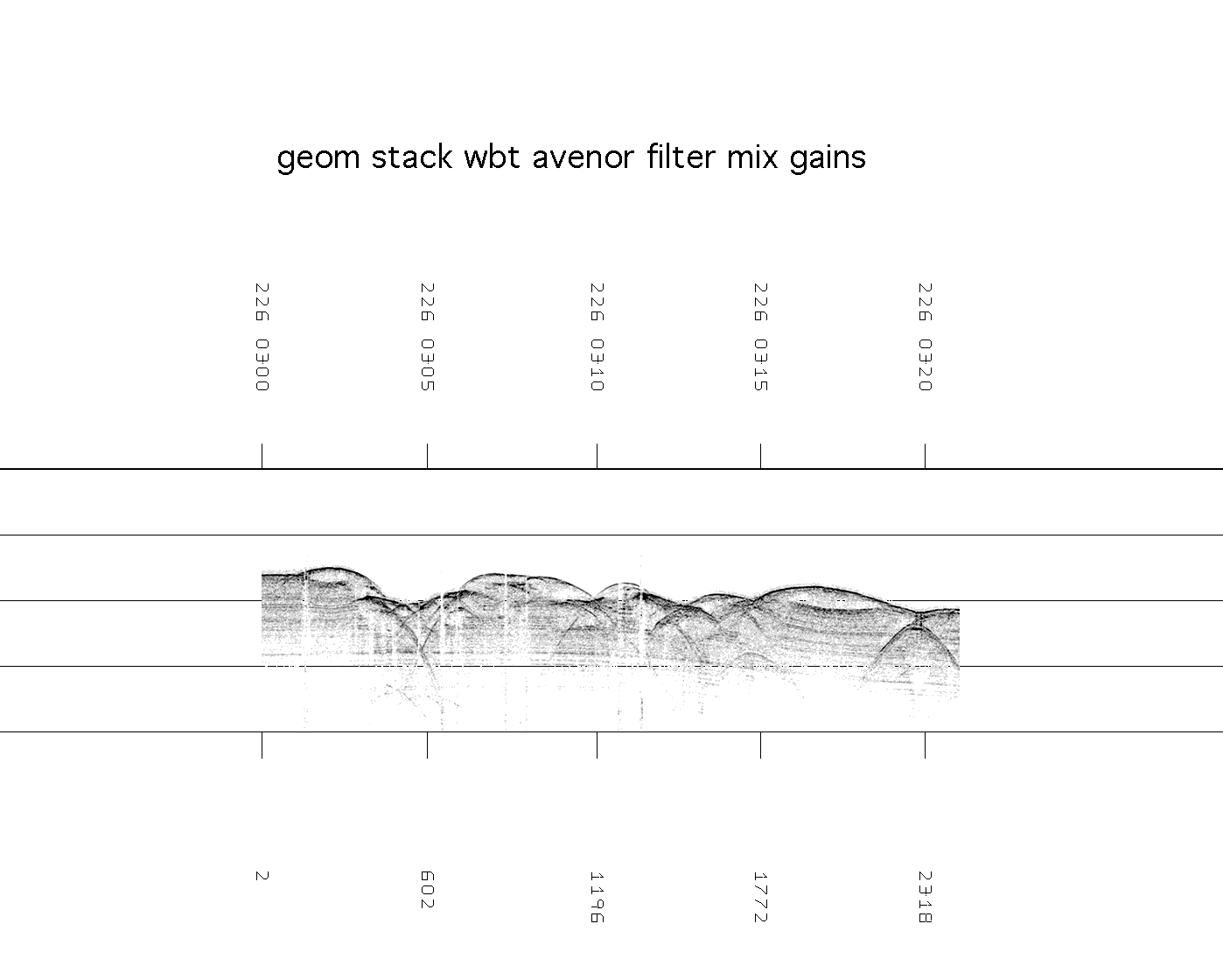 The time domain sample interval is .5 milliseconds (500 microseconds). 86>lsd env-2006_226_0158_LF_028.sgy 1 2 SHOT TR RP TR ID RANGE DELAY NSAMPS SI YR DAY HR MIN SEC 25267 1 0 0 1 0 1066 5333 50 2006 226 1 58 39 25268 1 0 0 1 0 1066 5333 50 2006 226 1 58 41 5333 samples at .00005 seconds is .2666 seconds Recall that the output units are kilometers. OSI (output sample interval) is preset to 1 meter or .001 kilometers. SHOT TR RP TR ID RANGE DELAY NSAMPS SI YR DAY HR MIN SEC 27749 1 2 1 1 2 786 196 1000 2006 226 3 0 3 196 samples seems small, but plots with osi .5 and .25 look the same.