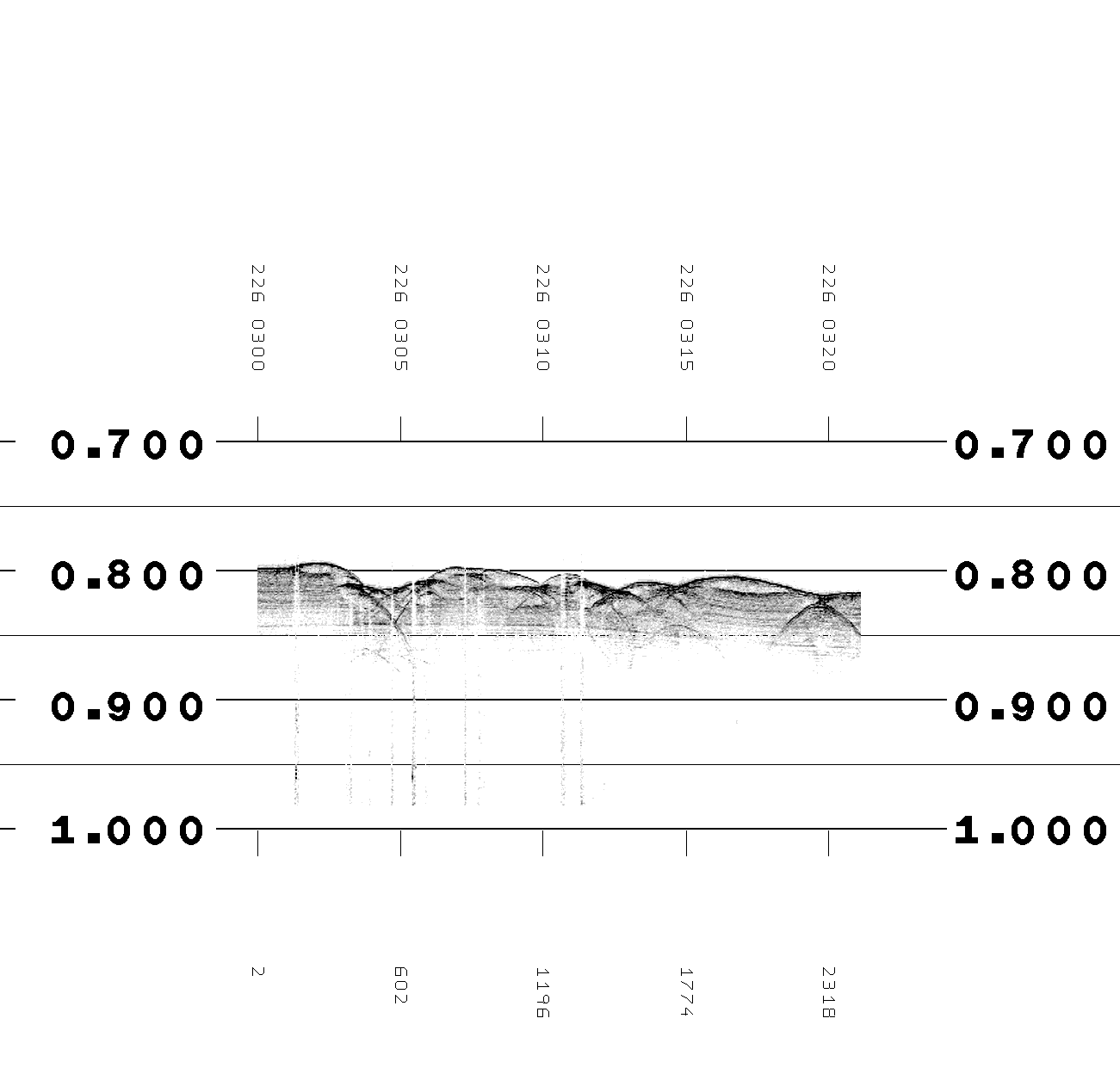 Many sub-bottom profiler users want the data displayed in depth rather than two-way travel time. Sioseis process T2D transforms time domain taces to depth domain traces using user defined velocity functions. Time domain plot from previous example (Healy06). Depth domain plot of the same data. stdout of t2d script.Back to SIOSEIS Examples. Go to the list of seismic processes. Go to SIOSEIS introduction.