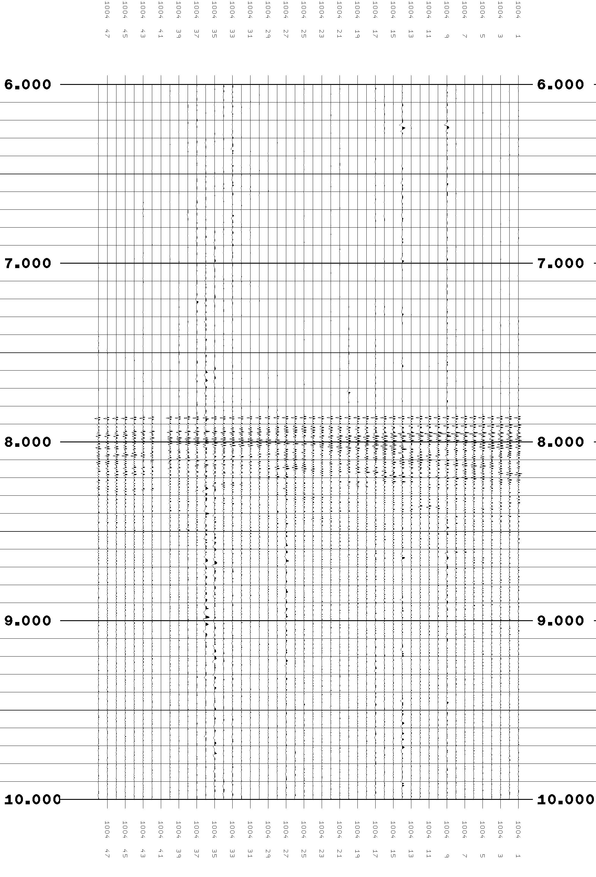 1) Shot 1004 trace 41 and shot 7306 trace 27 are "dead" (near zero) and may be