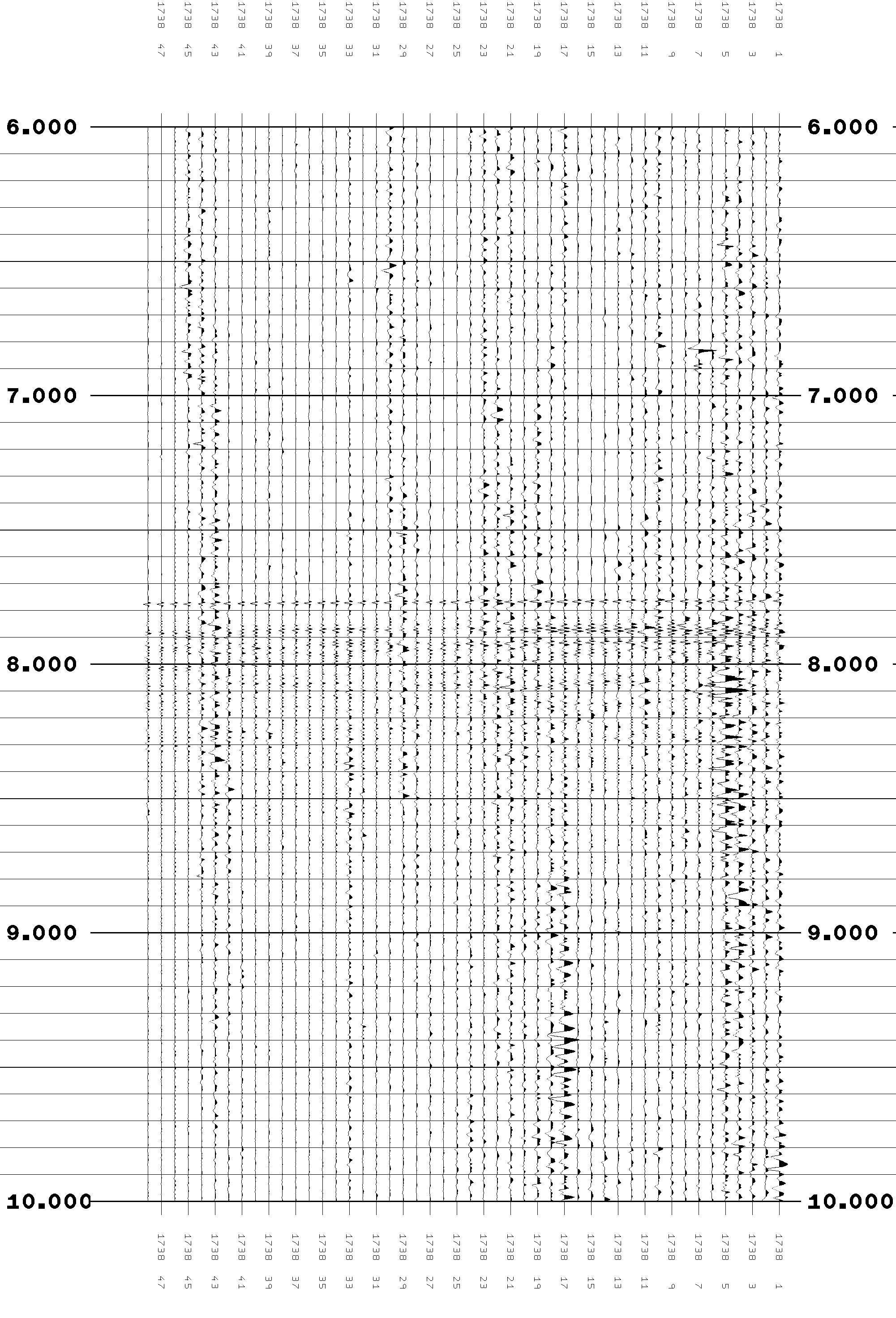 2) Shot 11738 does not have any "dead" traces, but is quite noisey including