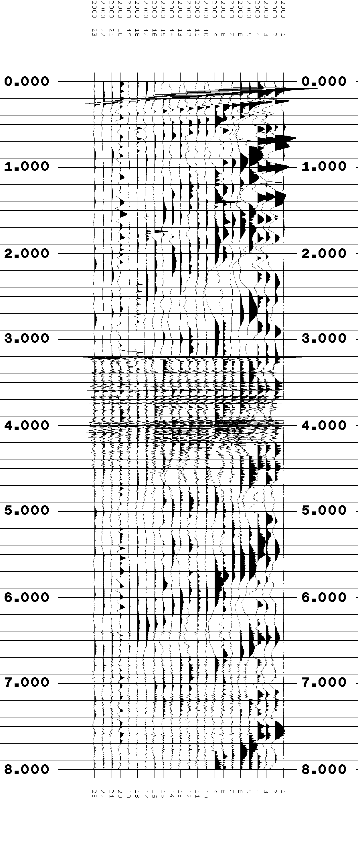 3) The plot without filter or agc alows show that trace 1 is bad.